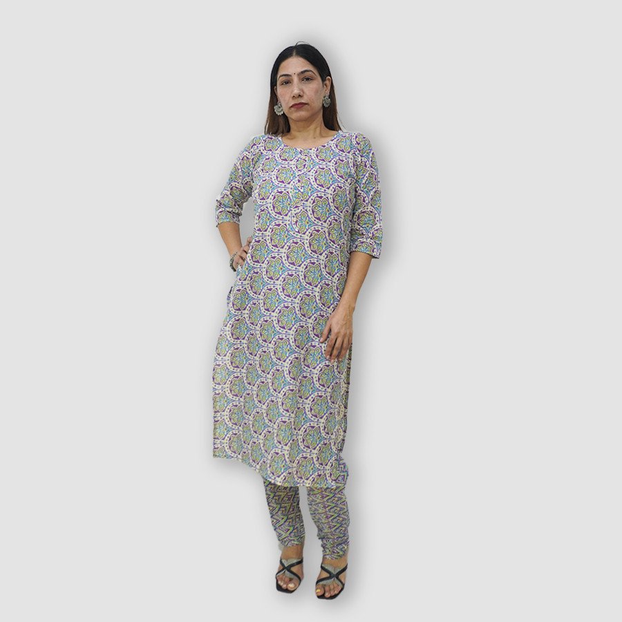 Coordinated Outfit: A kurti set typically includes a matching kurti (tunic) and bottom, offering a complete, coordinated look.