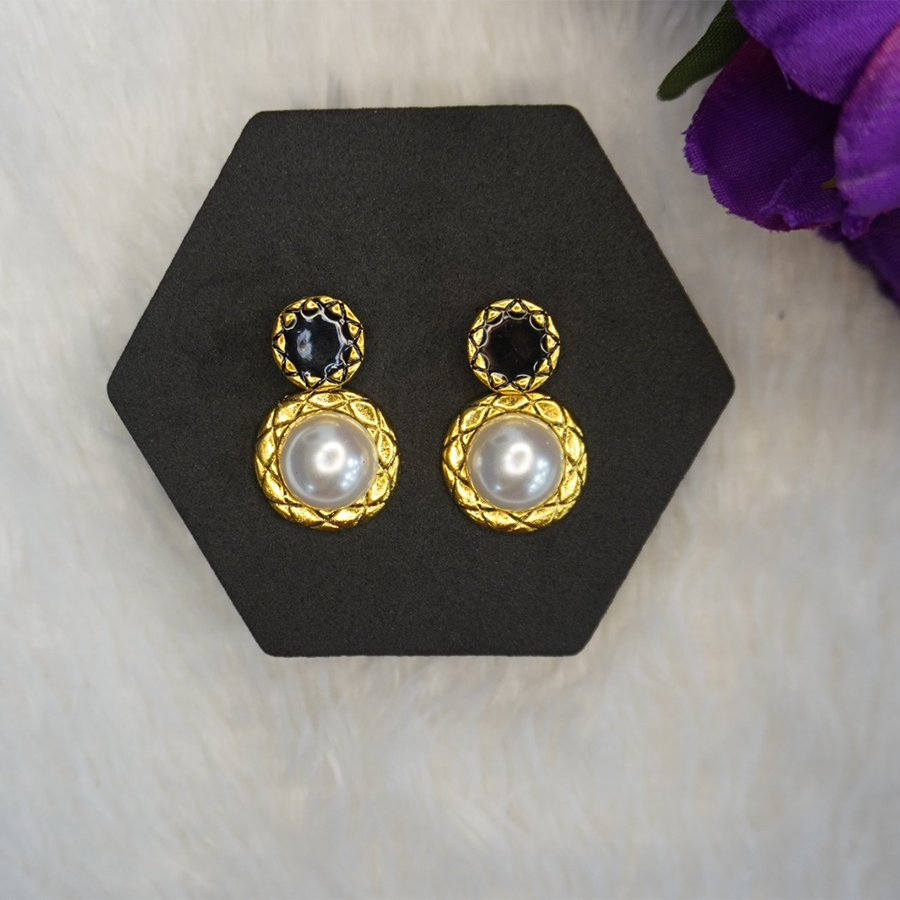 Gold-Plated With Pearl Studded Earrings