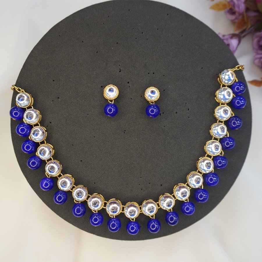 Includes: Necklace, earrings, and maang tikka with Kundan work.