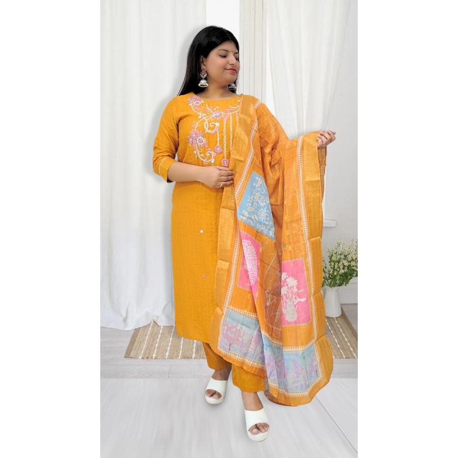 ·  Kurti, matching bottoms (like leggings, palazzo, or salwar), and often a dupatta.