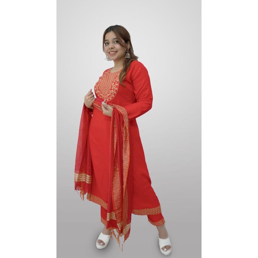 ·  Kurti, matching bottoms (like leggings, palazzo, or salwar), and often a dupatta.